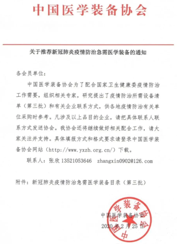 天海榜上有名|中國醫(yī)學(xué)裝備協(xié)會(huì)推薦新冠肺炎疫情防治急需醫(yī)學(xué)裝備清單